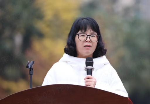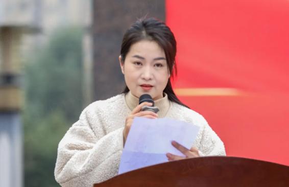 教师代表罗娓娓登台发言。她用温暖而有力的话语,为学子们注入强心剂。她代表全体高三教师承诺,未来百日,全体教师将与学子们并肩作战,课上精讲精练,课下答疑解惑,做学子们最坚实的后盾。