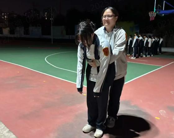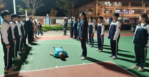 在实操环节,参训人员两两一组,互相扮演“施救者”与“患者”,反复练习腹部快速向上向内挤压的技巧。12月8日晚,护校队成员还进行了强化训练,通过真人示范与一对一纠错,进一步巩固动作的准确性与力度控制,增强了实战应变能力。