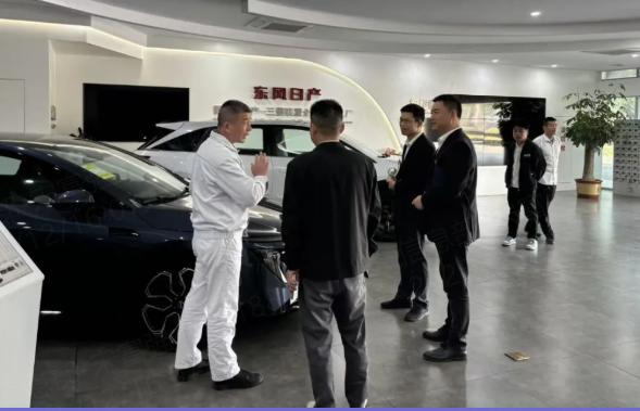 在赵科长带领下,参观日产最新车型,讨论新能源汽车领域新技术。
