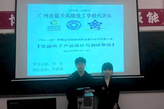 近日,2025年“一带一路”暨金砖国家技能发展与技术创新大赛首届电子产品设计与调试赛项圆满落幕。广州市蓝天高级技工学校机电一体化专业黎伟鹏与工业机器人应用与维护专业杨慧两位同学,凭借沉着冷静与规范操作,双双荣获中职组决赛优秀奖。指导老师何佳、肖健涌凭借丰富的竞赛指导经验,助力学子实现技能突破。