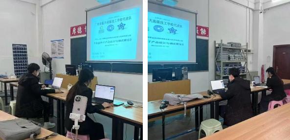 备赛期间,黎伟鹏、杨慧两位同学扎根实训中心,在指导老师的带领下,对标大赛技术规程与评分标准开展理论知识巩固、实操技能强化与模拟竞赛演练。师生团队反复打磨每一个环节,熟练掌握电子产品全流程设计与调试任务。