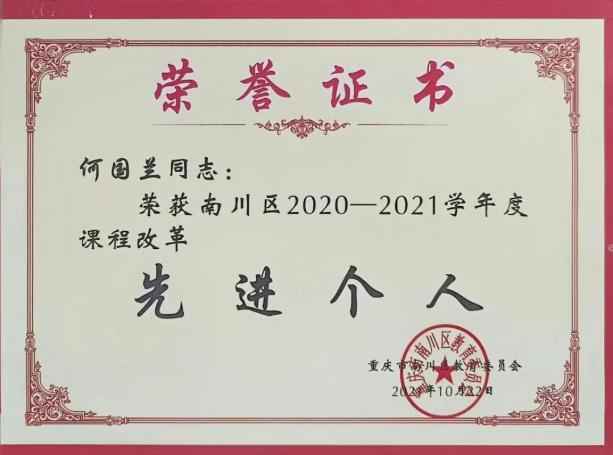 她主编的《中职英语导学案》,荣获重庆市教学成果奖。她个人也先后荣获“南川区课改先进个人”“优秀教研组长”等称号,用实干诠释着教研组长的“领头雁”担当。