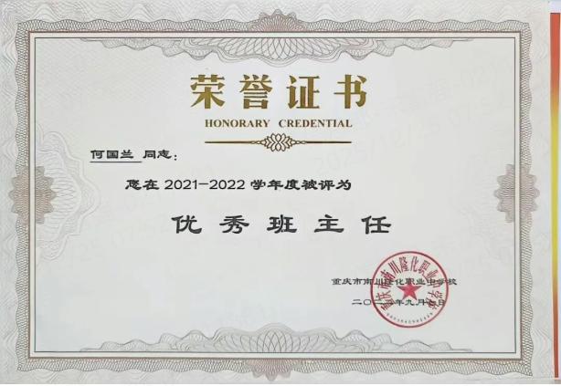 她所带的班级,获评“南川区先进班集体”,连续多年获得校级表彰。班里的学生,有的成为企业技术骨干,有的自主创业成为创业先锋,有的考入高校继续深造。她的育人案例《慧眼·伯乐》在省级期刊发表,成为职教德育的生动范本。有学生在毕业留言中写道:“何老师让我们相信,职教学子也能绽放璀璨光芒。”