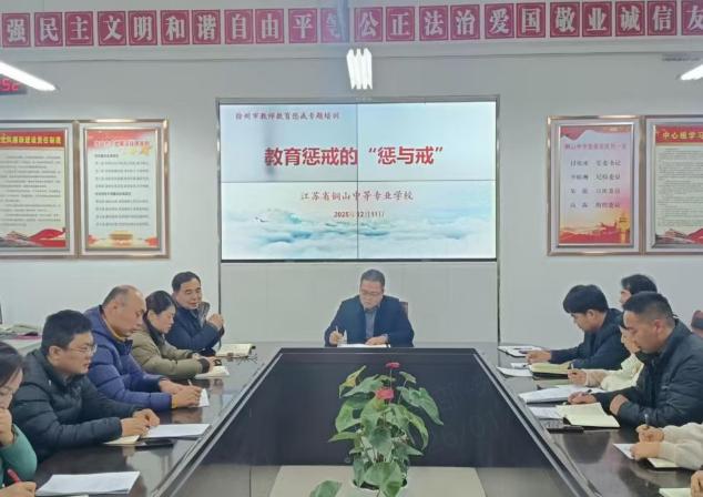 下一步,铜山中专将以此次学习为契机,持续深化教育惩戒专题培训,完善相关管理制度,搭建常态化交流平台,不断提升教师规范实施教育惩戒的能力,引导教师践行育人使命,以科学惩戒守护学生成长,推动学校教育教学管理高质量发展。
