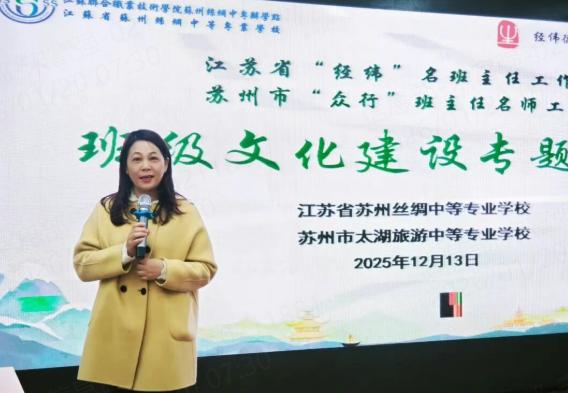专题经验分享环节结束后,太湖旅游中专副校长徐丽萍作总结发言。她首先对本次德育研学交流活动的圆满开展表示肯定,对我方毫无保留的经验分享、细致周到的活动安排再次表达了诚挚谢意。徐校长表示,此次研学交流干货满满、收获颇丰,丝绸中专展示的特色德育模式、务实有效的育人举措,为太湖旅游中专优化德育工作提供了宝贵借鉴,尤其在特色德育载体打造、班主任队伍建设等方面,拓宽了学校的育人思路。