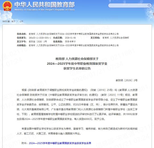 近日,教育部、人力资源社会保障部发布关于2024-2025学年度中等职业教育国家奖学金获奖学生名单的公告,菏泽市城建技工学校8名优秀学子凭借扎实的专业功底、突出的技能素养及不懈的进取精神,成功斩获该奖项,每人将获6000元奖励,以实力为青春镌刻荣光。