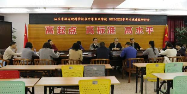 为精准服务国家战略和地方重点产业发展,对接区域产业需求,日前,汕头市林百欣科学技术中等专业学校在科技楼三楼会议室召开2025-2026 学年专业建设研讨会,校领导班子、教务科、招生就业科以及各教学部负责人参加了会议,会议针对结合学校区域优势和行业背景,共同研判产业趋势,明确专业建设方向,围绕优化专业布局、打造特色专业群,升级人才培养等方面展开研讨。