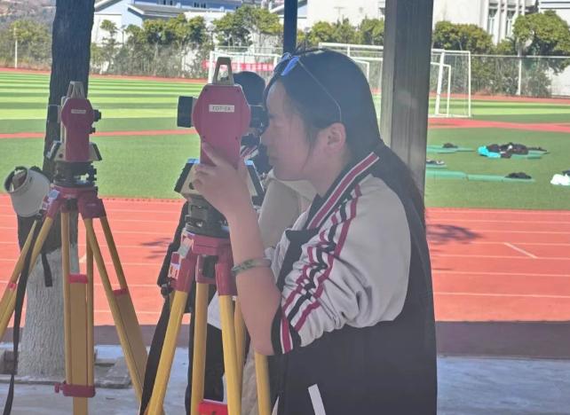 建筑专业学子依托水准仪解码空间,砂和水泥的堆积混合中沉淀着匠心温度,为空间定下理性坐标。