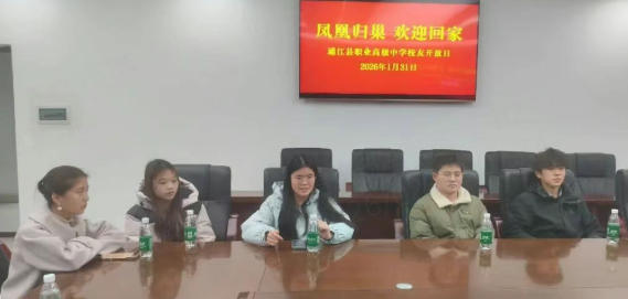 凤凰归巢,薪火相传,榜样如灯,照引前程。2026年1月31日,通江县职业高级中学(综合高中)“凤凰归巢”优秀学生回访母校活动温情落幕,二十余名从母校走出的优秀学子载誉归来,以座谈分享、班级互动的形式,为学弟学妹们送上最真挚的成长指引,为冬日校园注入滚烫的青春力量。