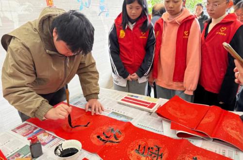 翰墨飘香迎新春,春联送福暖人心。恰逢新春佳节来临之际,龙岩华侨职业中专学校黄水庆老师、曾帆老师和丘马武老师带领书法社同学,走进云墅小区开展写春联送祝福活动。此次活动既是学校今年与北关社区开启党建共建后的首场文化互动,也是传承中华优秀传统文化、践行志愿服务精神的具体实践。