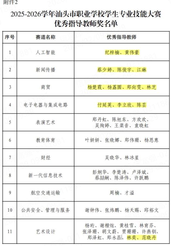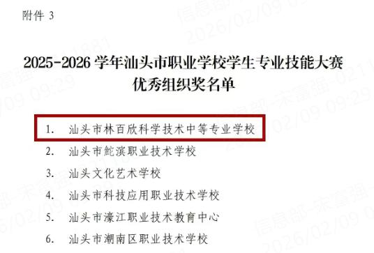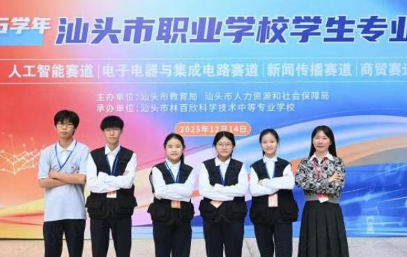 近日,2025-2026学年汕头市职业学校学生专业技能大赛圆满举办。作为本届大赛开幕式的承办单位,林百欣科技中认真筹备、有序组织,共选派12支精锐学生队伍,参与八大热门赛道的激烈角逐,学子们凭借扎实的专业功底、精湛的技艺水平和出色的临场发挥,在赛场上过关斩将,最终斩获累累硕果,获一等奖8项,二等奖4项的好成绩!