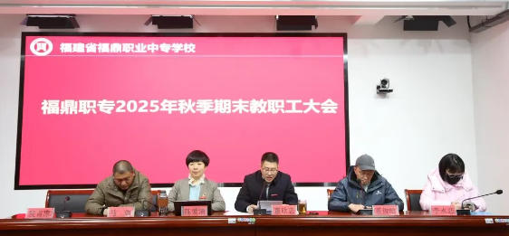 岁末年初,辞旧迎新。近日,福鼎职专 2025-2026 学年第一学期期末工作会议在行政楼二层报告厅召开,全体教职工参会。会议由党支部书记、校长董欣恋主持,既是对 2025 年工作的全面复盘,也为寒假及 2026 年学校发展作出部署安排。