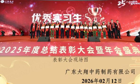 近日,我校收到来自广东大翔中药制药有限公司(大翔集团)的喜报,我校2023级中药专业实习生王韵喻同学,在2025年度实习实践工作中表现突出,经企业综合评审,被授予“2025年度优秀实习生”荣誉称号,并作为优秀实习生代表上台领奖。