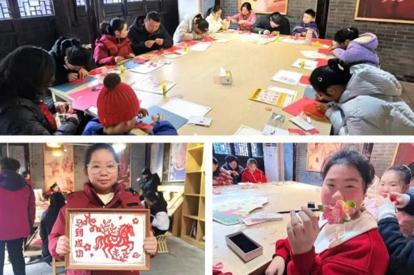 彩笔绽春色,葫芦传祝福。葫芦画展位前,参加研学的游客们凝神聚力、屏气凝神,彩笔在天然葫芦表面缓缓游走,五彩斑斓的色彩渐渐晕染开来,勾勒出骏马奔腾、吉祥如意的精美纹样,既有古朴雅致的韵味,又饱含新春的喜庆意趣,引得围观的群众纷纷驻足观赏、拍照打卡,不时发出阵阵赞叹。溱湖刻纸展位上,剪刀翻飞间、纸屑轻飞扬,游客们以刀代笔、以纸为媒,将马年吉祥意象与传统纹样巧妙融合,线条流畅利落、构图精巧灵动,每一件作品都藏着对新年的美好期许,承载着浓浓的非遗情怀。
