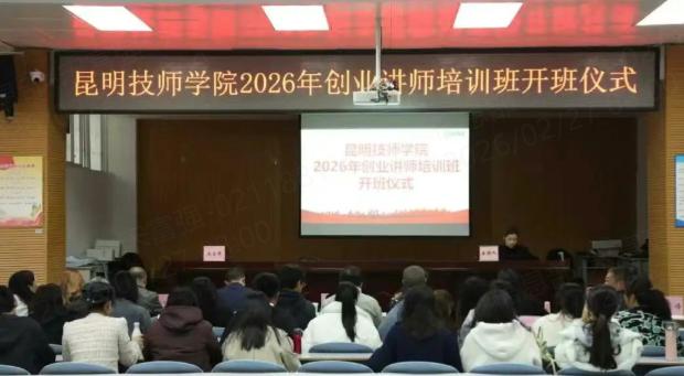 2026年2月25日,昆明技师学院2026年SYB创业培训讲师培训班开班仪式在学院本部顺利举行。学院班子成员、相关部门负责人及全体参训教师参加活动。