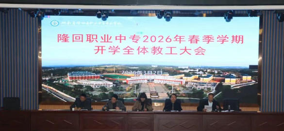 春启新程,奋楫争先。为统一思想、凝聚共识、部署任务,确保新学期高质量开局,3 月 2 日上午,隆回县职业中专以“凝心聚力谋发展,提质增效启新程”为主题在多功能报告厅召开 2026 年上学期开学教工大会。学校党委副书记范青友主持会议,全体教职员工参会,共绘学校高质量发展新蓝图。