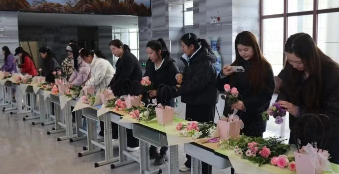 女教职工们暂时放下繁忙的工作,在花艺的海洋中寻觅一份宁静与美好。大家凭借自己独特的审美和对生活的热爱,精心挑选花材,用心构思造型,认真修剪枝叶,巧妙搭配色彩。在一双双巧手的打理下,一束束独具匠心、赏心悦目的插花作品逐渐呈现,每一件作品都蕴含着对美的理解和对幸福的感悟。花香与笑语交织,大家在感受美、欣赏美、创造美的过程中,陶冶了情操,增进了彼此的情谊。
