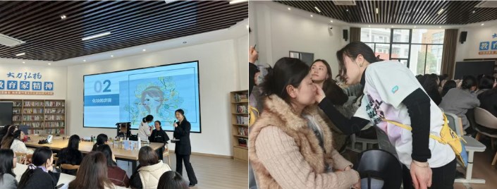 “妆”点风采,内外兼修绽芳华。为助力女教职工提升职业形象、彰显个人魅力,3月4日,一场别开生面的化妆技巧与礼仪知识培训在校园温情启幕。专业化妆师从基础护肤、底妆打造到职场得体妆容,结合教职工授课场景,进行了细致入微的讲解与现场示范,手把手指导大家掌握实用化妆技巧。培训现场互动热烈、欢声笑语不断,女教职工们认真聆听、积极尝试,在交流切磋中解锁形象管理新技能。“得体的妆容不仅是对讲台的尊重,更是给自己的一份底气,这份培训让我收获满满。”参与体验的王思圻老师感慨道。这场“美丽之约”,让大家在掌握形象管理技能的同时,更增添了从容自信的育人风采。