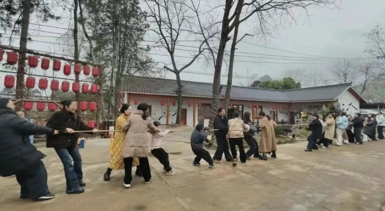 拔河比赛将现场氛围推向高潮,女教职工们自发组队,紧握长绳、齐心协力,场边的呐喊加油声此起彼伏。