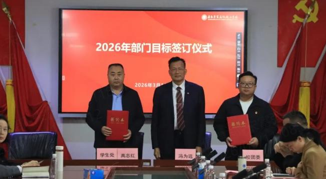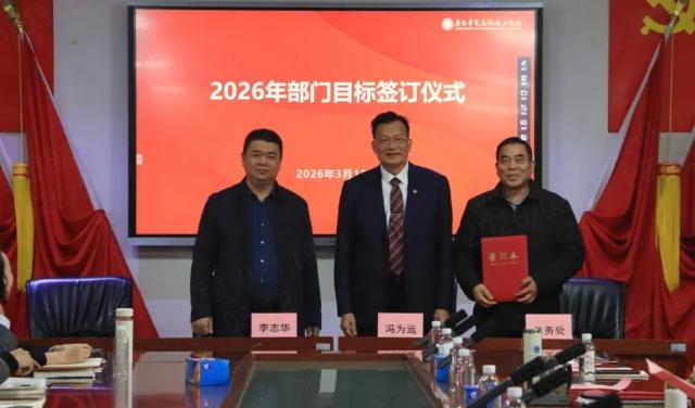 工作部署结束后,会议进入核心环节——部门目标签订仪式。冯为远顾问依次与分管副校长及其分管的部门负责人签订《2026年度校领导工作目标管理责任书》《安全工作目标管理责任书》《2026年度部门工作目标》,进一步明确管理职责,将学校发展的关键指标转化为可量化、可考核的具体行动,构建起“人人有任务、个个有责任”的工作格局。