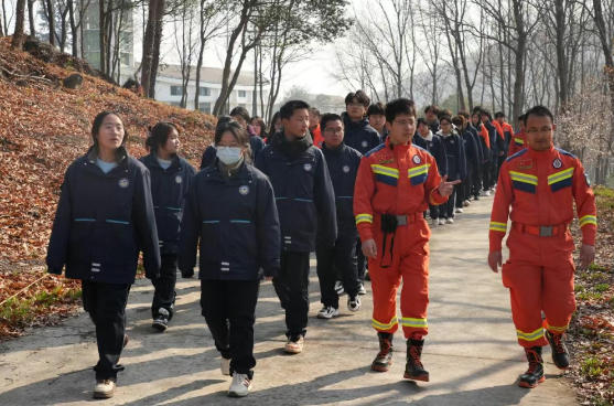 接着,在森林防火队员的带领下,师生们开始了徒步之旅。途经松树林时,陆玮同学结合实地环境,生动讲解了溧水特色物种“雁来蕈”的生长特性与生态意义,让同学们对家乡的自然资源有了更深的认知。行至秤锤树保护小区,林场工作人员介绍了这一珍稀植物的保护现状与科研价值,同学们驻足聆听,感受生物多样性的魅力。途中,融媒体社团学生在徐雪娇老师的指导下,用镜头记录下每一个学习与实践的瞬间。