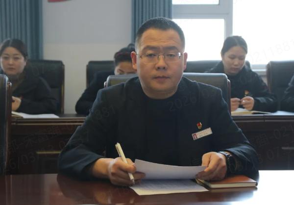 邹毅同志带领全体党员集中学习2025年《政府工作报告》。