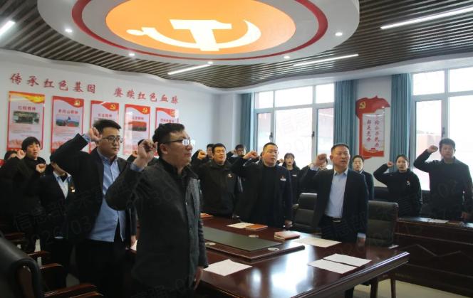 全体党员齐唱国歌、面向鲜红的党旗,高举右手,重温入党誓词,缴纳党费,进一步锤炼党性修养、坚定理想信念。