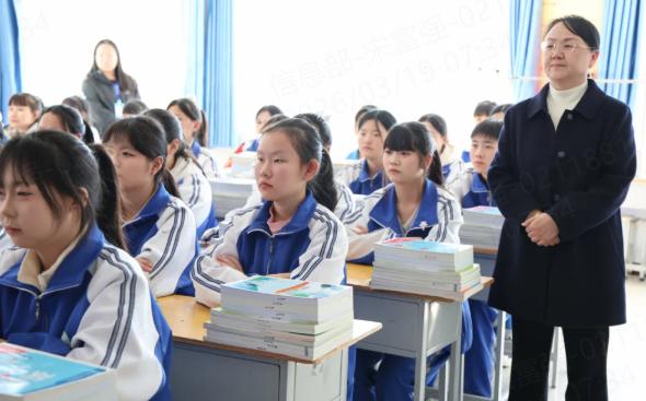 班会过程中我校党支部书记、校长王丽萍,执行校长林虎带领中层干部深入各年级各班级观摩此次活动。