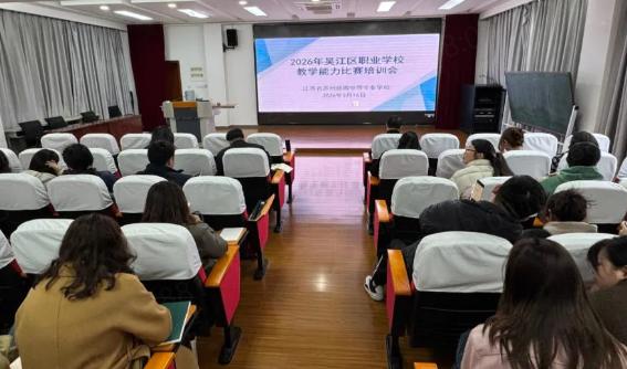 日前,吴江区职业学校教学能力比赛培训会在我校实训B楼四楼仿真教室顺利开展。本次活动由吴江区教育局教研室主办,来自全区各职业学校的教学能力比赛负责人、教研组长、参赛团队成员及备赛教师齐聚一堂。我校张志凯副书记、蒋建锋副校长、教科研处沙刚主任出席本次会议,与会人员共同研讨教学能力提升路径,全力备战区级复赛与苏州市级比赛。