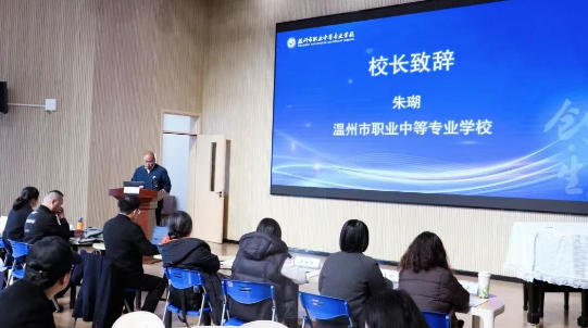 活动伊始,温州市职业中等专业学校党委副书记、校长朱瑚致欢迎辞,向与会领导和老师表示诚挚问候,充分表达了学校对思政教育教学工作的高度重视,并期待以此次活动为契机,加强校际交流、凝聚育人合力,共促思政课教学提质增效、创新发展。