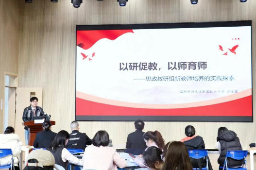 经验分享环节,洞头区职业技术中学思政教研组长郭金淼老师进行《以研促教,以师育师》的经验交流,他重点阐述了新教师的培养路径与机制建设,强调“以老带新”“项目驱动”等模式在实际中的应用成效。