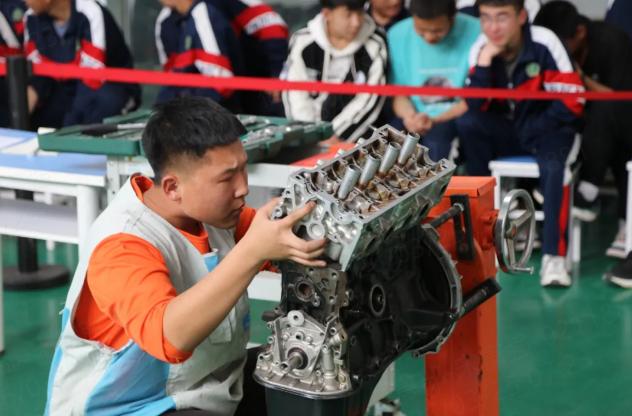 师资与竞赛双向赋能成效显著。6名“双师型”教师团队屡获市、区级教学与技能大赛荣誉,带领学生斩获2024年全市技能大赛汽车机电维修赛项一等奖、2025年自治区技能大赛汽车机电维修赛项二等奖,构建“以赛促教、以赛促学”良性循环。校企联合开展职业素质拓展课程,实现学生技能与素养双提升,诠释“劳动光荣、技能宝贵、创造伟大”的时代风尚。