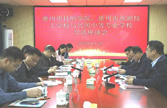 近日,惠州市技师学院、惠州市西湖技工学校教育同仁联袂到访兴国中等专业学校,开展参观交流与座谈研讨。我校党总支书记谢林洪、校长胡东京、工会主席庄阳春陪同。
