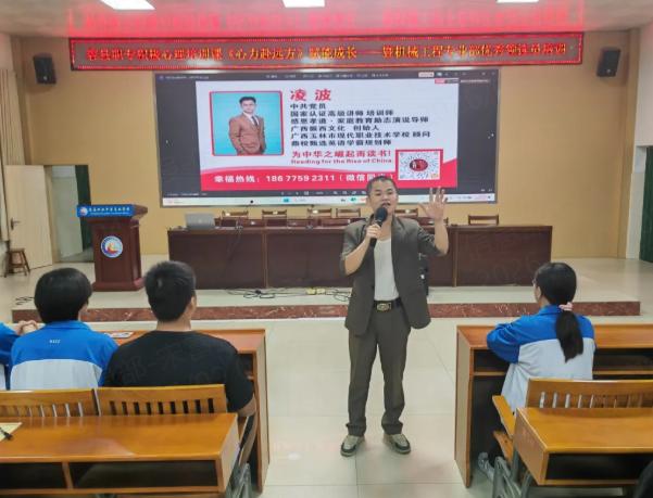 为深化校园文化建设,提升学生综合素养,近日,容县职业中等专业学校机械工程专业部组织开展优秀领读员专题培训。活动特邀梁志毅副校长讲授积极心理培训课《心力赴远方》,为领读员代表赋能充电,助力学子以更饱满的姿态投身“三声”校园文化建设。