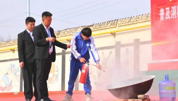 随后招生办副主任高金玉结合校园实际,详细讲解灭火器的构造、适用范围及“提、拔、握、压”四步操作法。