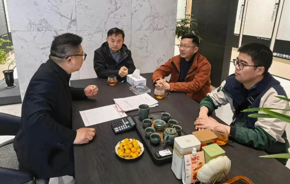 张兵一行首站来到海安超时代装饰材料有限公司,详细了解经贸系实习生在工作岗位上的适应情况与成长表现,并与企业负责人进行深度洽谈,围绕当前销售行业发展现状、人才需求趋势及校企协同育人机制展开充分交流。