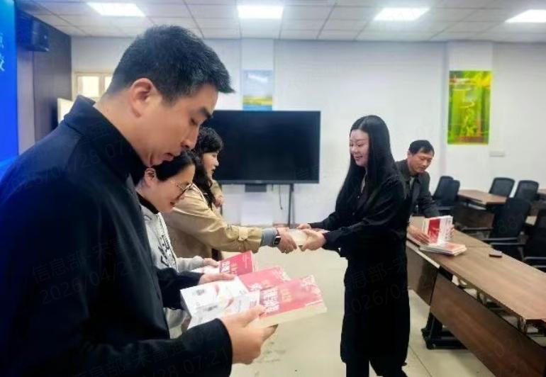 仪式现场,夏正红校长为各位参考教师逐一颁发备考教材,向大家主动提升自我、积极备考考证的进取态度给予充分肯定。她勉励全体参训教师珍惜学习机会,合理统筹日常教学与备考时间,潜心钻研、认真备考,以良好的状态备战考试,顺利取得社工职业资格证书,不断提升个人专业素养与综合业务能力。