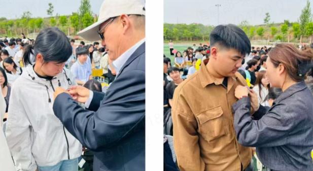 活动现场,领导与班主任为学子们佩戴成人徽章,一枚枚徽章承载着祝福与责任。